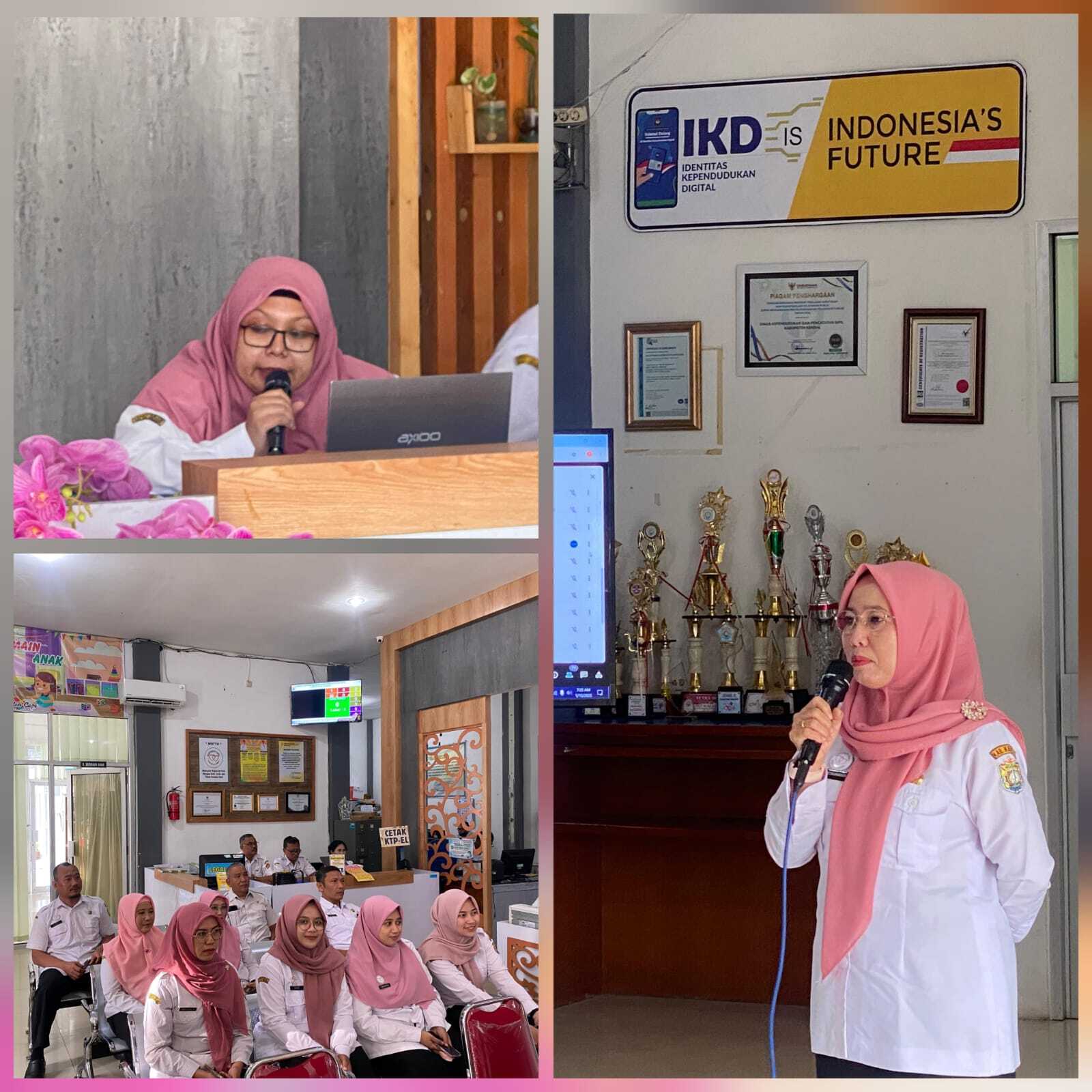 Lebih lanjut, Ibu Kepala Dinas menegaskan bahwa setiap pegawai memiliki peran penting dalam mendukung kinerja organisasi. Beliau mengingatkan agar seluruh pegawai bekerja sesuai dengan tanggung jawab dan posisi masing-masing, karena setiap bagian memiliki kontribusi besar dalam mewujudkan pelayanan administrasi kependudukan yang prima di Kabupaten Kendal. Semangat kerja sama, disiplin, dan profesionalitas menjadi kunci keberhasilan dalam memberikan pelayanan terbaik kepada masyarakat.
